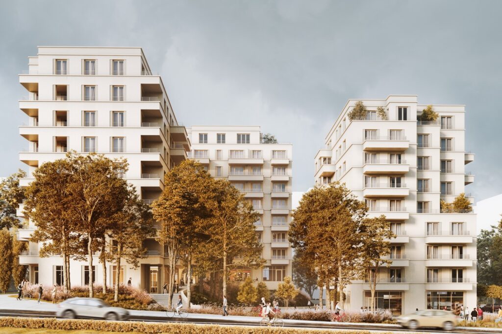 Kompleks mieszkaniowy przy ul. Banacha w Krakowie będzie składać się z trzech ośmiopiętrowych segmentów z lokalami usługowymi w parterze Łącznie powstanie 126 mieszkań, 6 lokali usługowych oraz 118 miejsc postojowych usytuowanych w dwukondygnacyjnym, podziemnym garażu.
